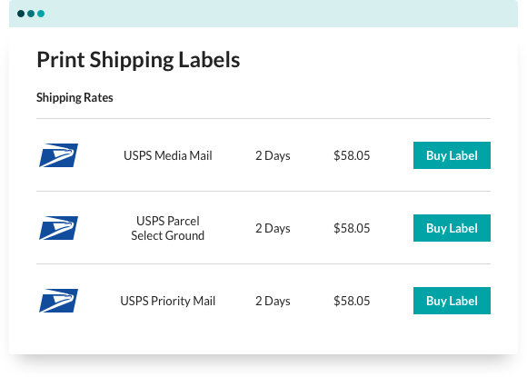 Save time and money by printing shipping labels directly in bIntegrated — no additional postage account required! bIntegrated offers the lowest discounted USPS rates available, so you know your shipping costs are under control. Once an order is shipped, bIntegrated automatically alerts the sales channel where the order was placed and provides the tracking number for the shipment.